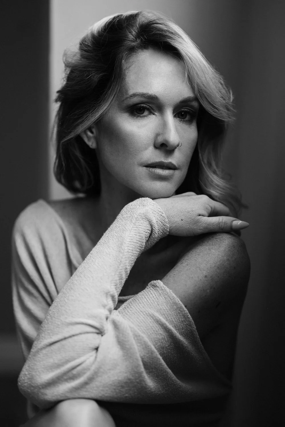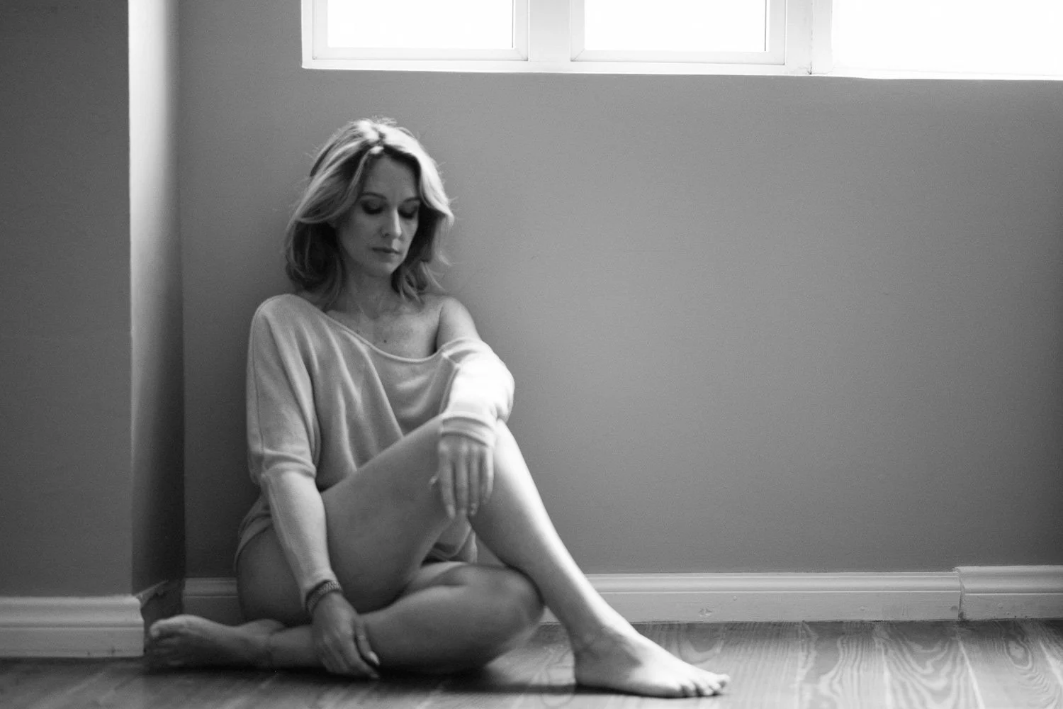 Most people cannot believe it when I tell them that sweaters or T’s (loose or tight) are PERFECT for your boudoir session. Why not? They’re comfortable, cozy, beautiful, full of texture, and they bring an element of softness to the strength we convey in our photos.