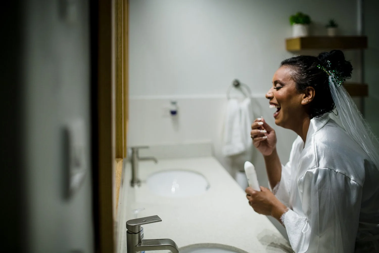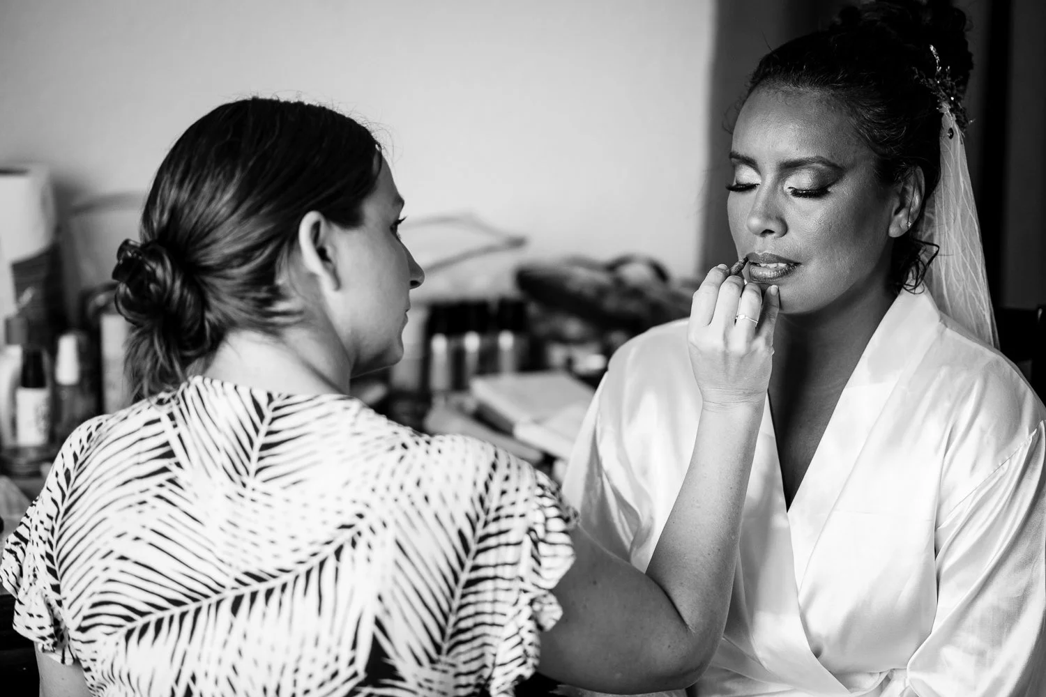 As I arrived at their gorgeous beach front house at Brandons beach on Spring Highway, I parked my car, and looked up to the dark sky. I usually give myself 10 minutes alone in my car before I start wedding day coverage, but something told me to get out and just go. As soon as I got to the patio, it was as though the heavens unleashed a rainstorm.
