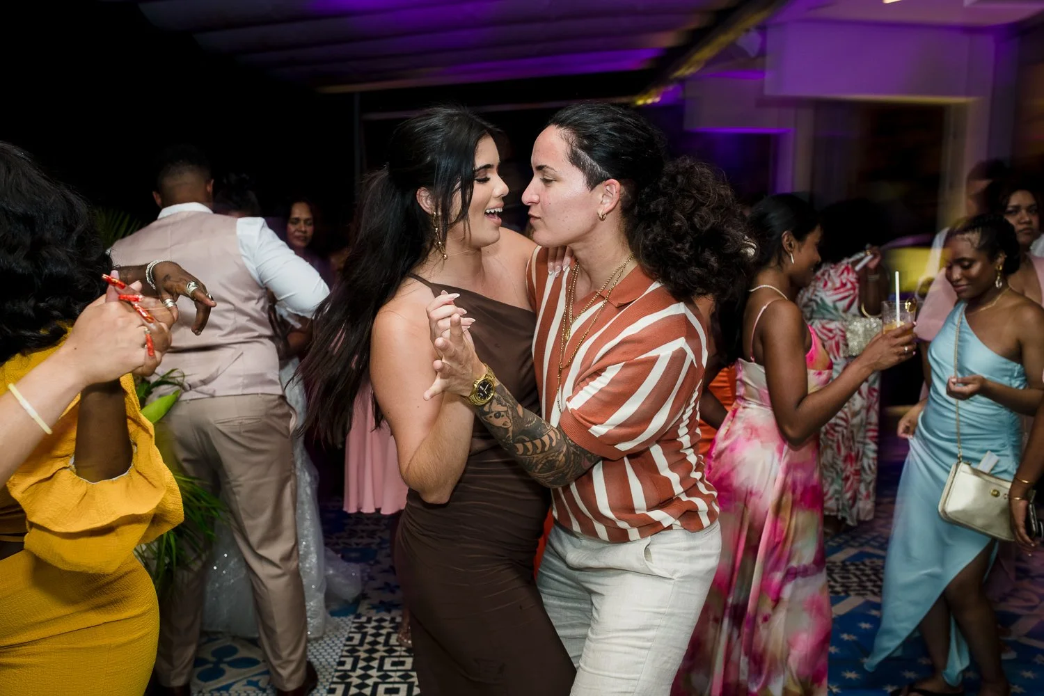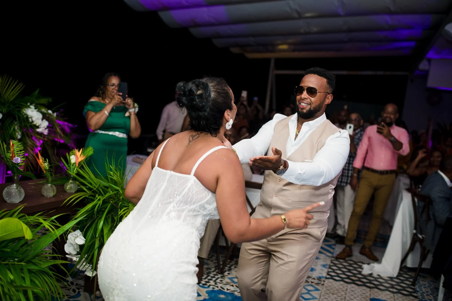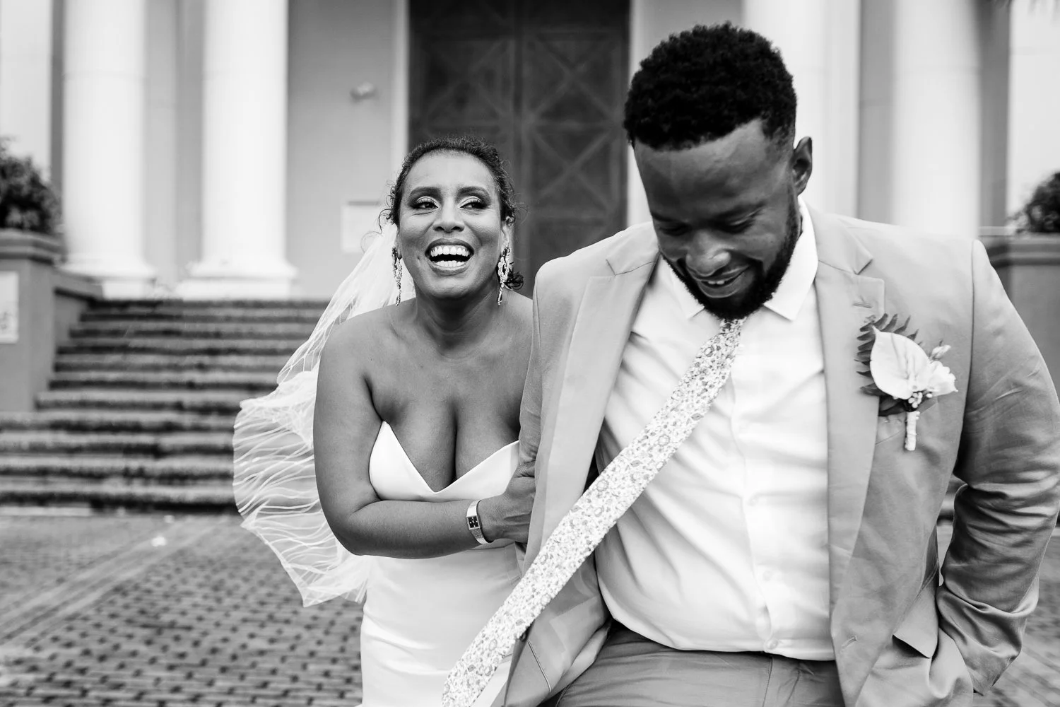 Pressing on, we put one foot in front of the other and carried on. We did the first look and created some seriously stunning photos with Aikeem, Anastasia and their amazing crew of friends and family. We had fun, we laughed, we danced, and Anastasia and Aikeem loved on each other so hard, you’d never have even known that they had to fight through this change.
