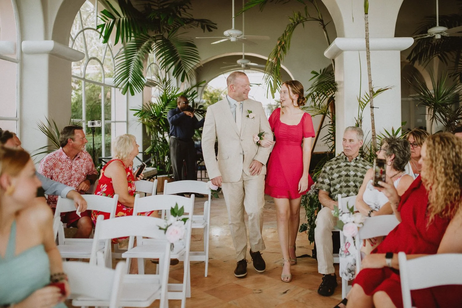 Nick walked down the aisle, sharing a smile with his daughter, and Jill held on tightly to her dad, while watching Nick as she saw him waiting for her.