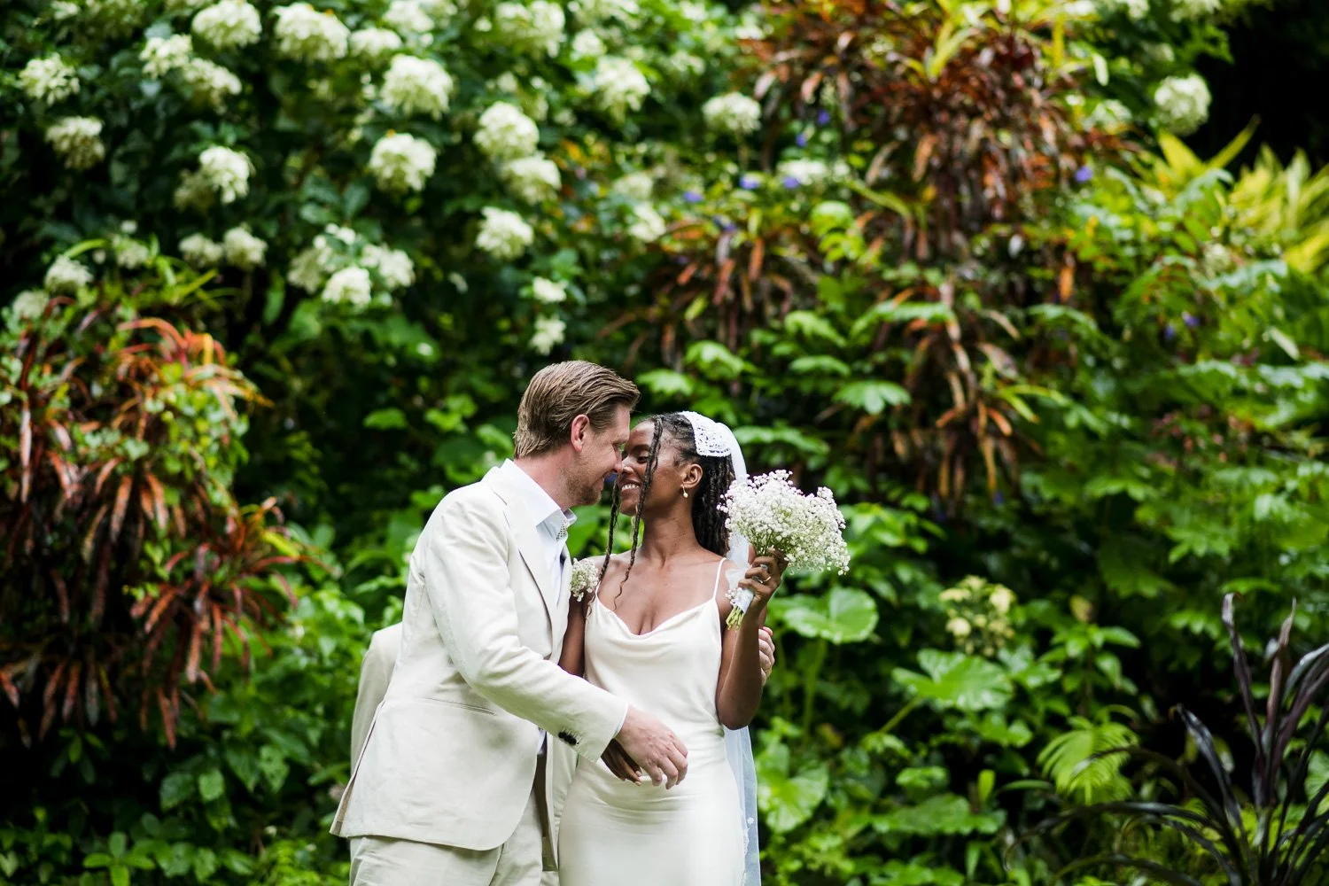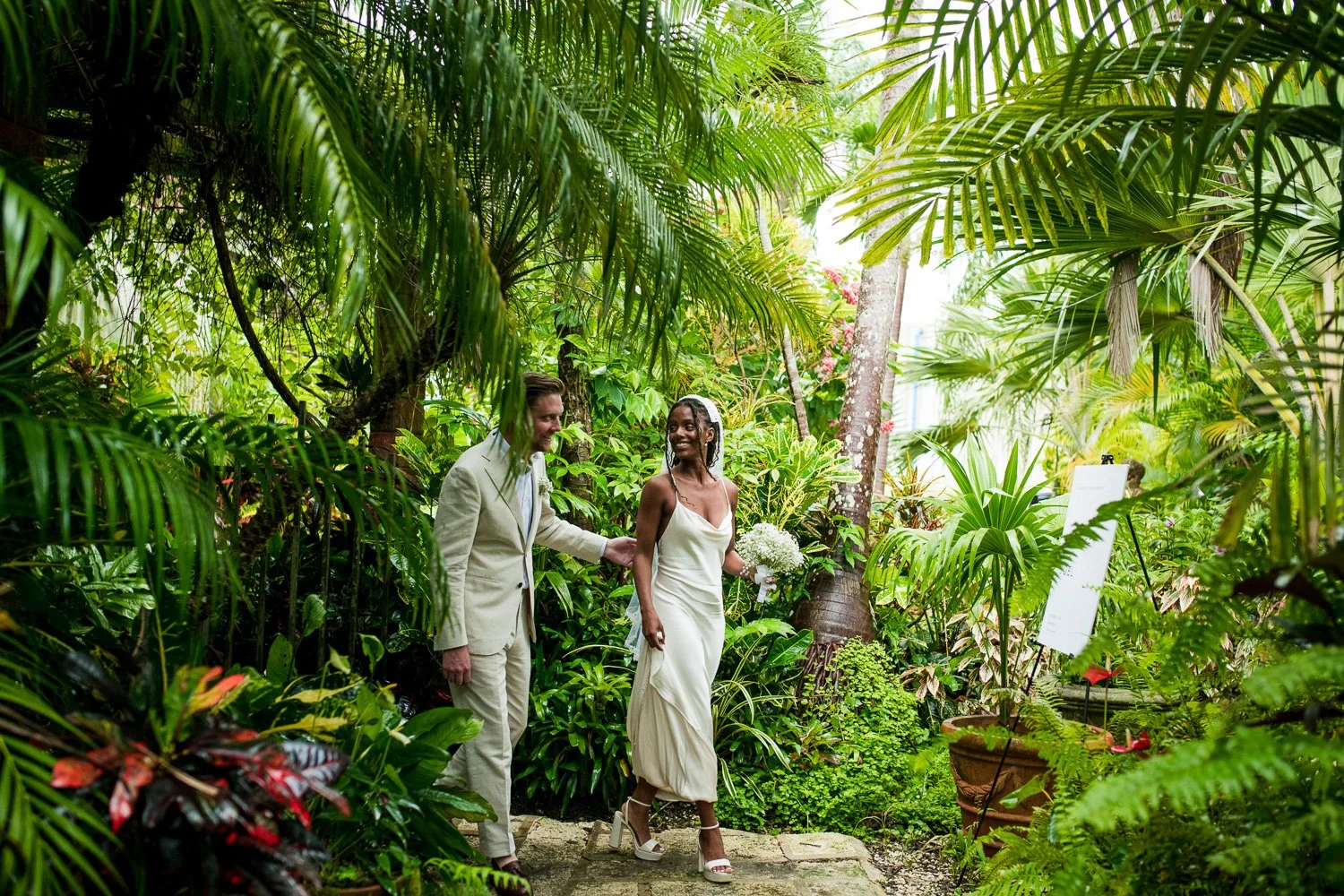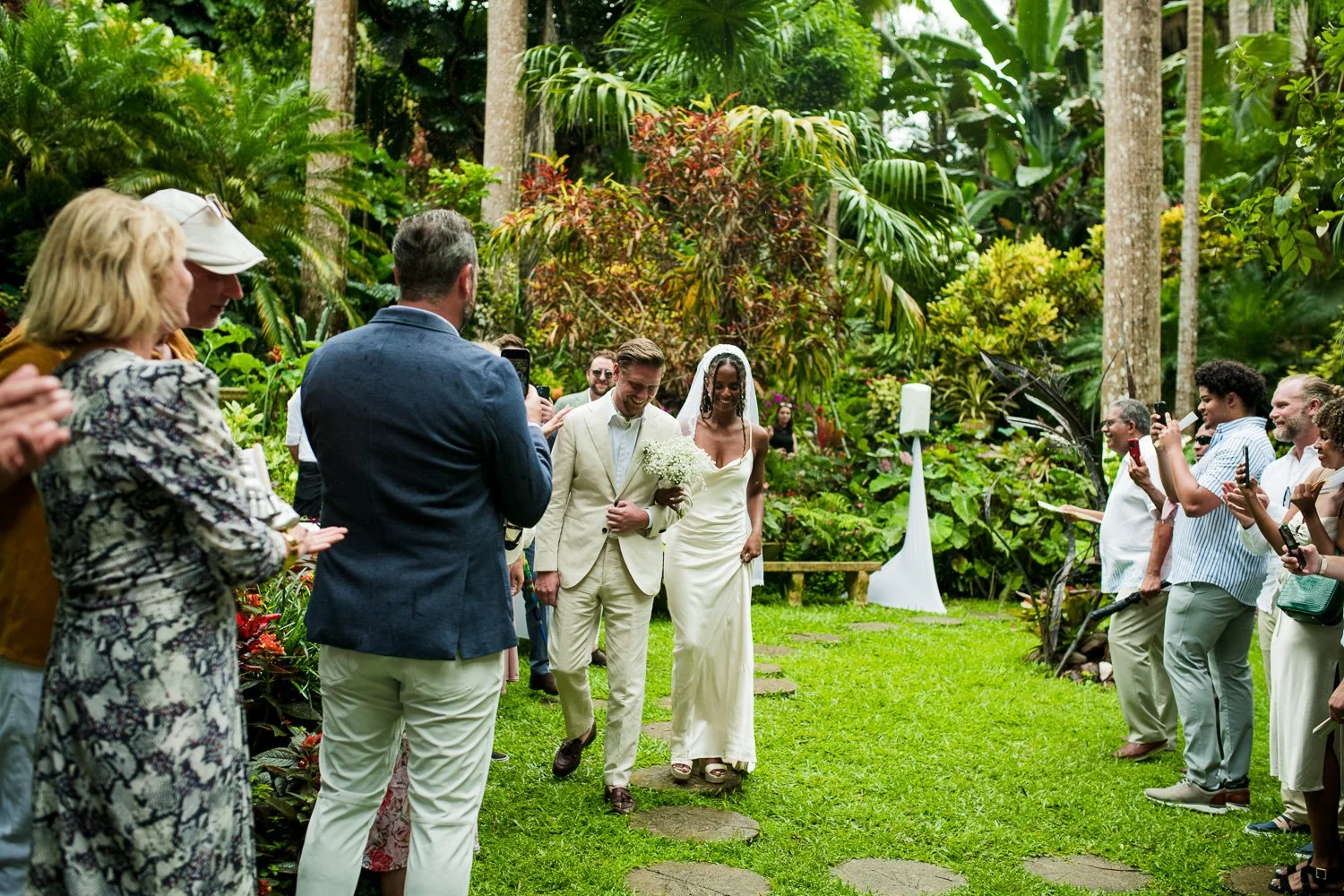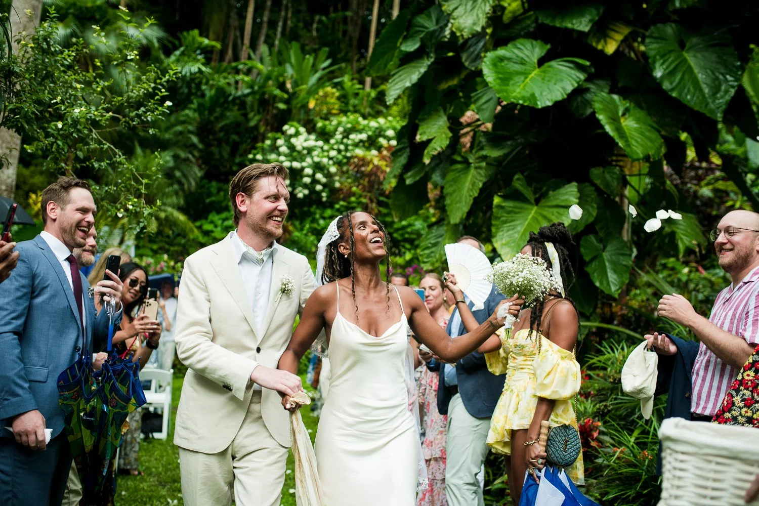 But never once was there a look of dismay on Jennifer or Joel’s face. From the time they arrived at the stunning Hunte’s Garden’s for their wedding, they had huge smiles on their faces. But more, they just laughed through it all. Her white dress turned brown on the bottom, the aisle was water logged, they drank champagne under an umbrella.