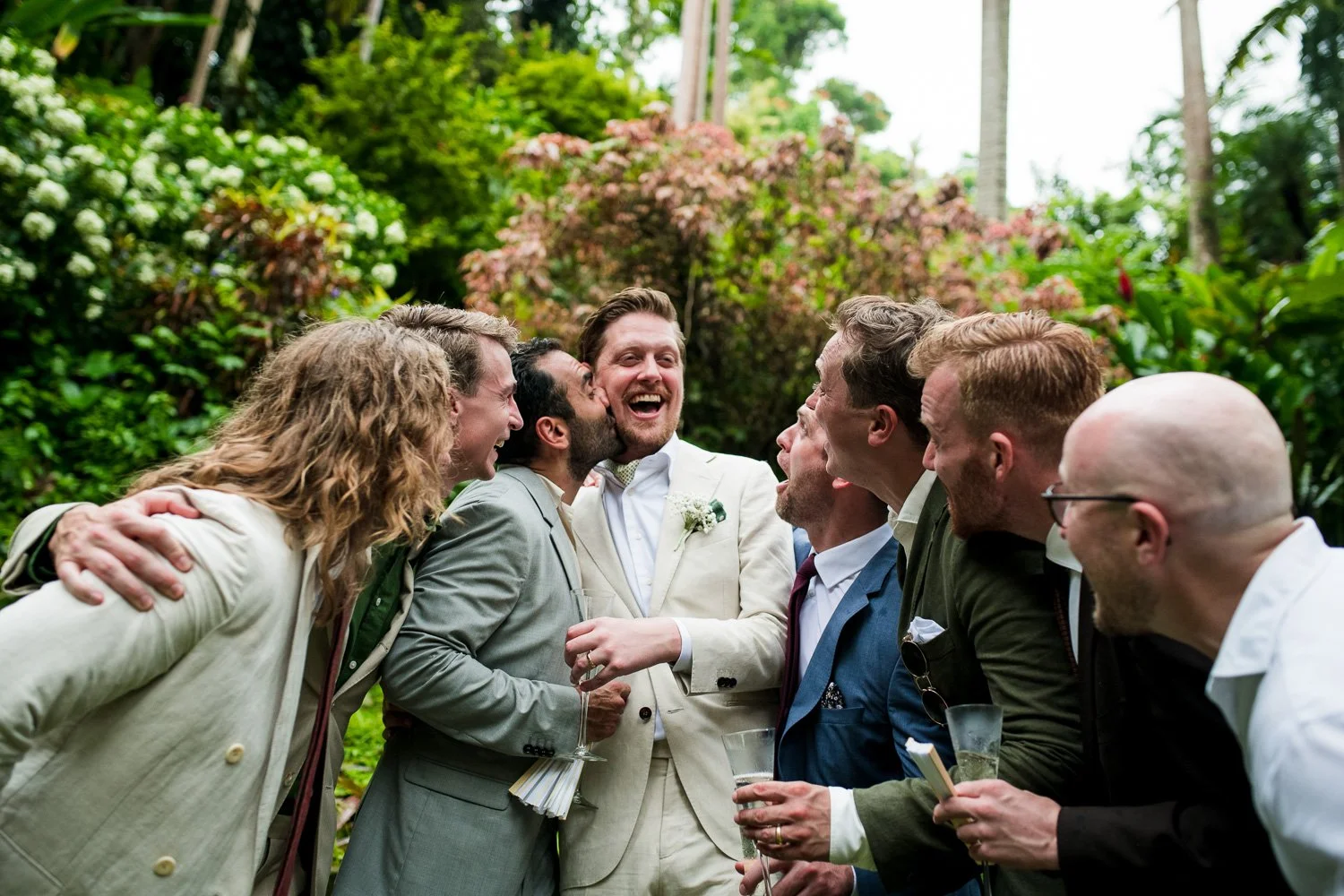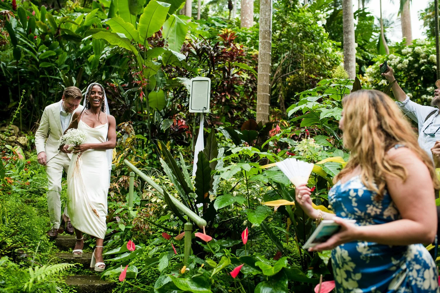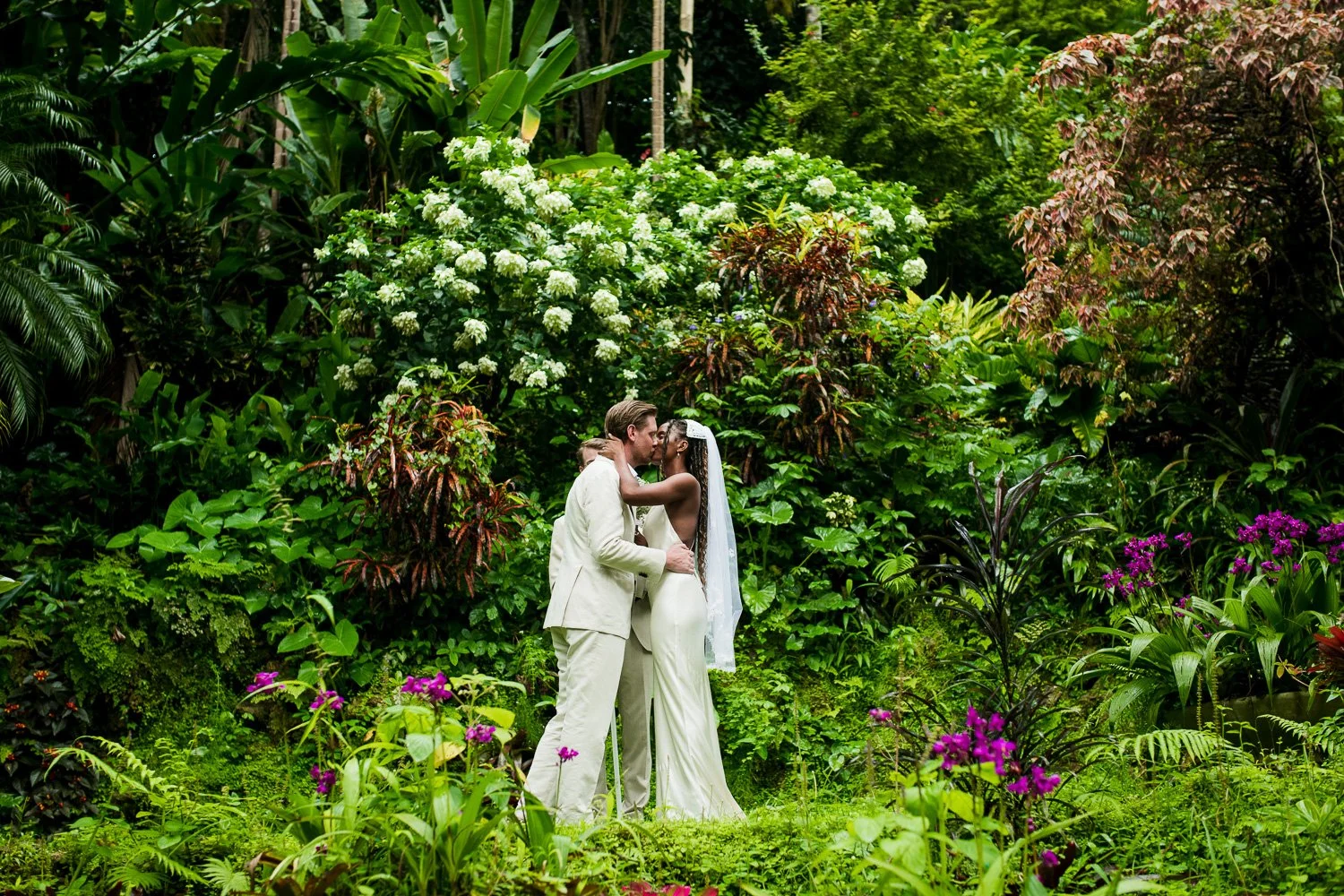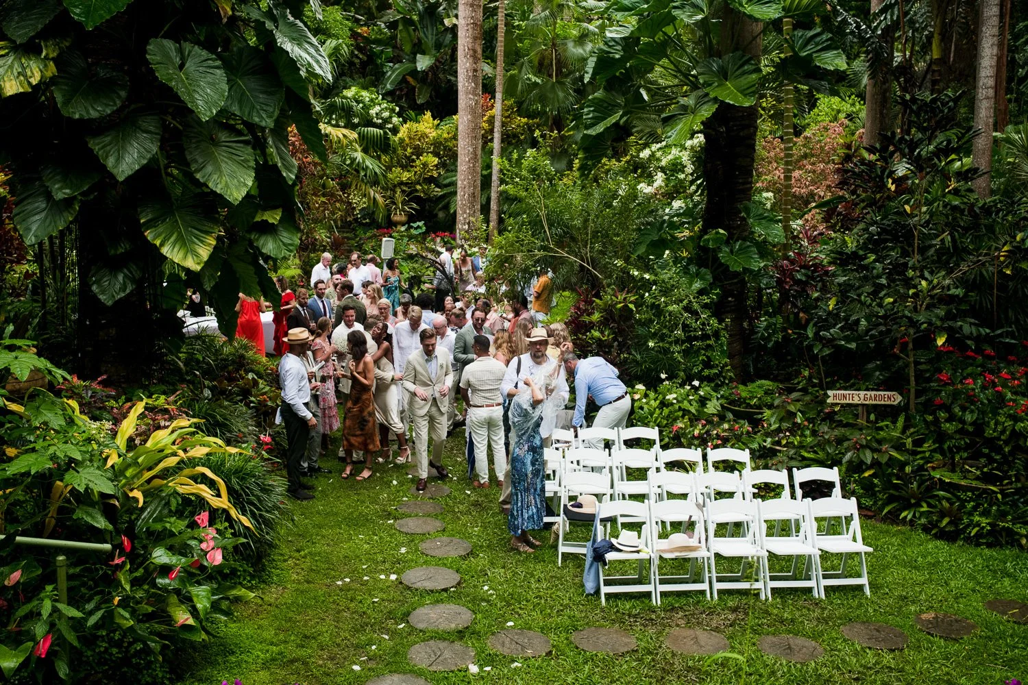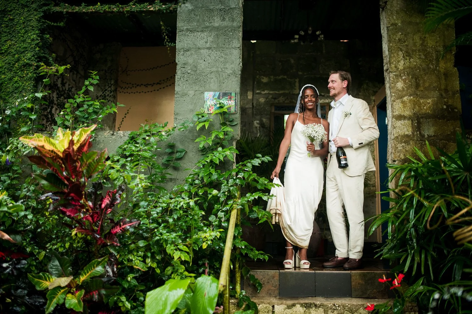 But never once was there a look of dismay on Jennifer or Joel’s face. From the time they arrived at the stunning Hunte’s Garden’s for their wedding, they had huge smiles on their faces. But more, they just laughed through it all. Her white dress turned brown on the bottom, the aisle was water logged, they drank champagne under an umbrella.