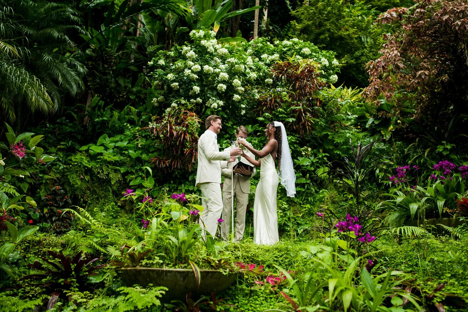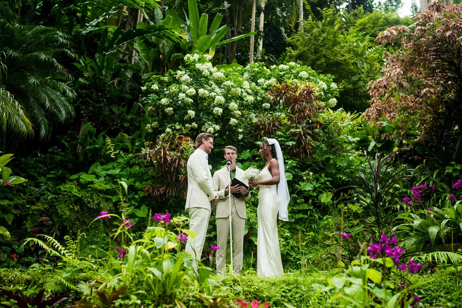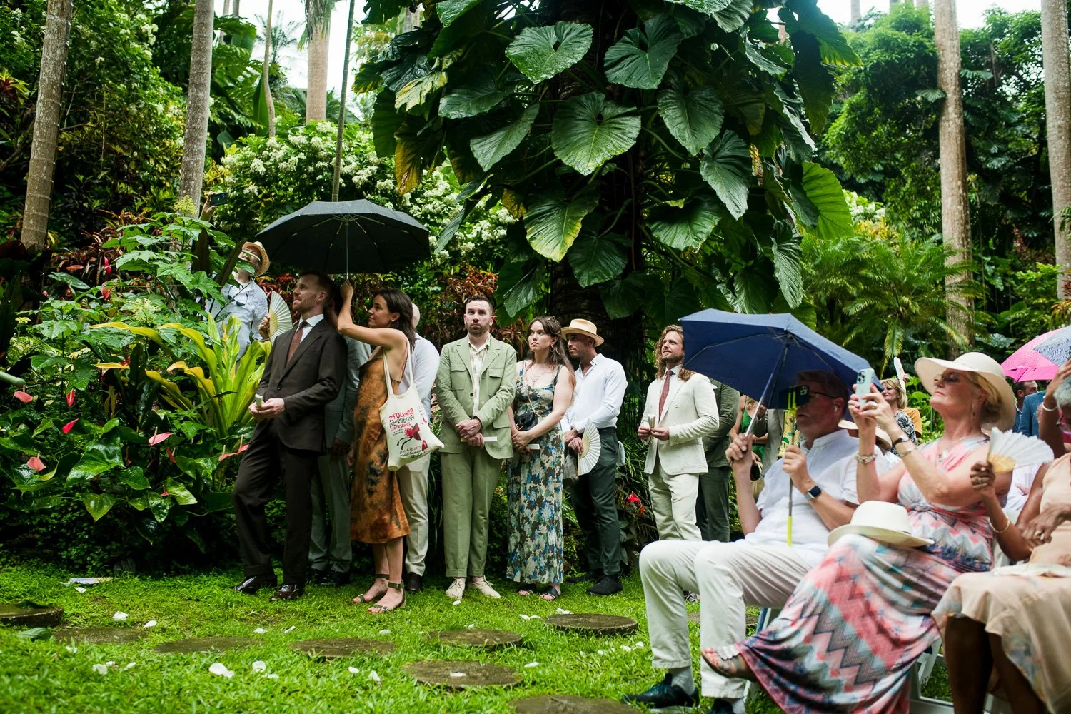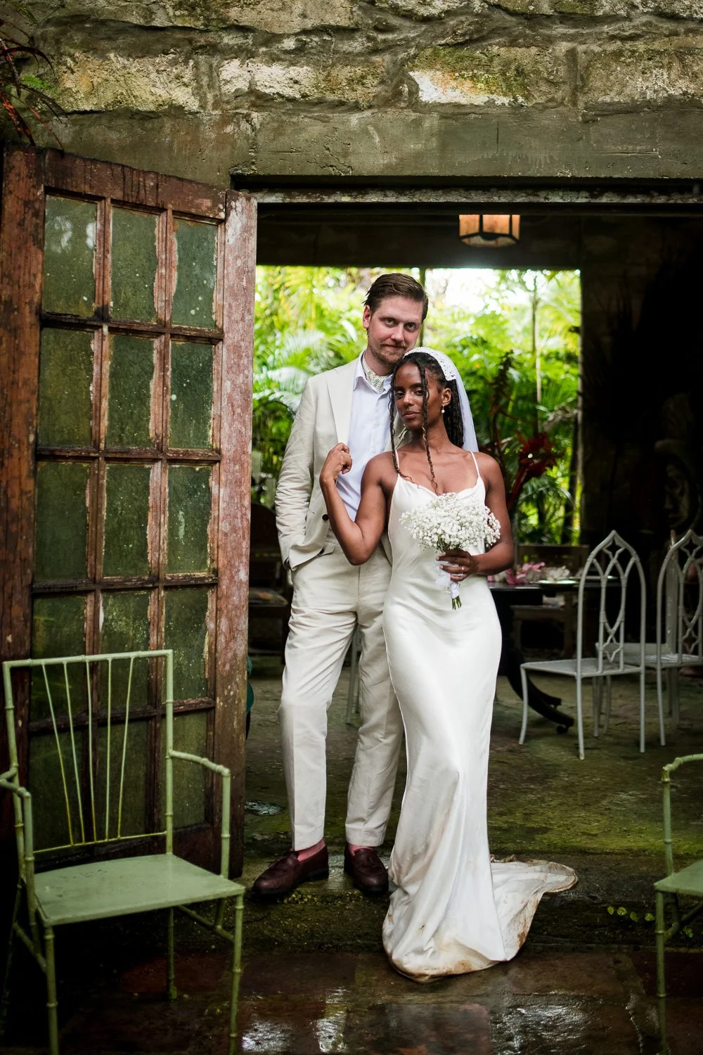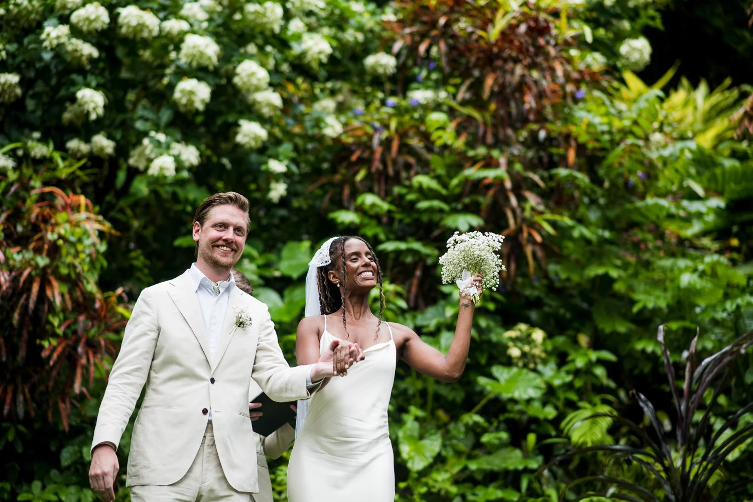 But never once was there a look of dismay on Jennifer or Joel’s face. From the time they arrived at the stunning Hunte’s Garden’s for their wedding, they had huge smiles on their faces. But more, they just laughed through it all. Her white dress turned brown on the bottom, the aisle was water logged, they drank champagne under an umbrella.