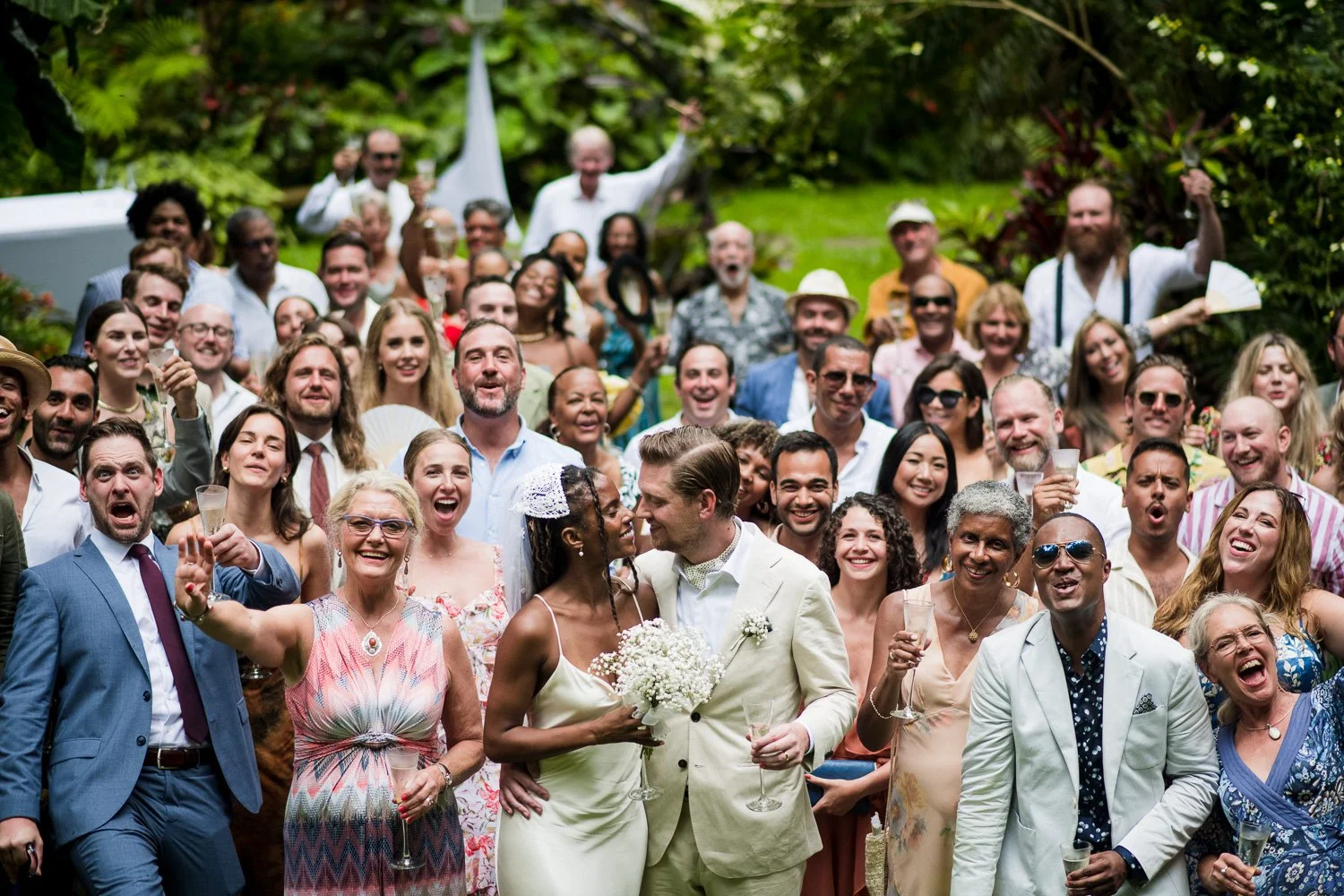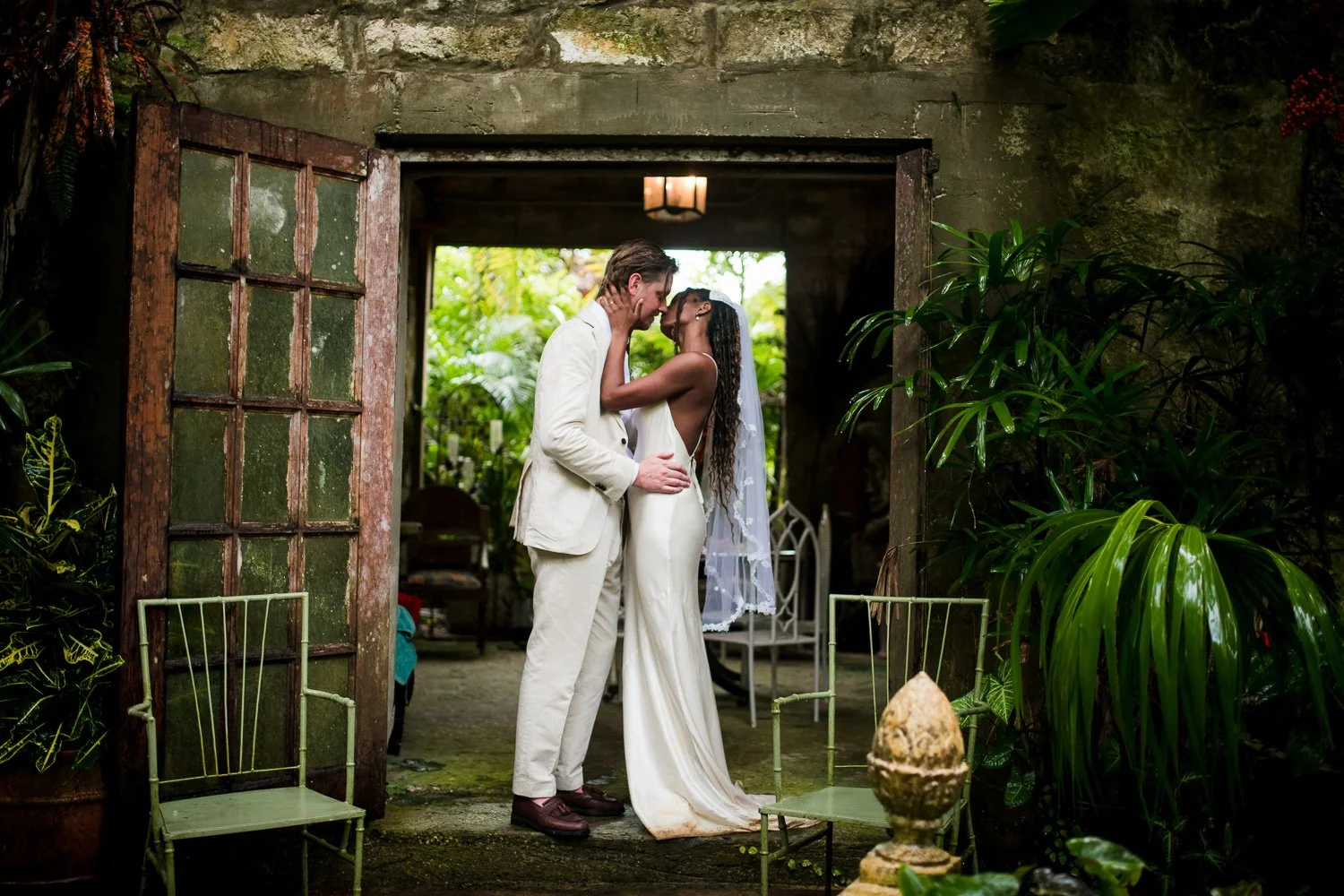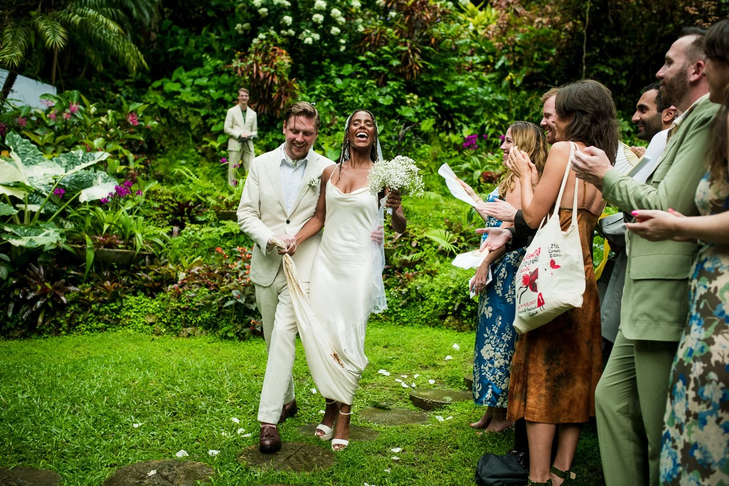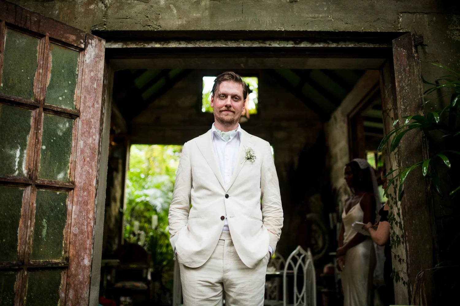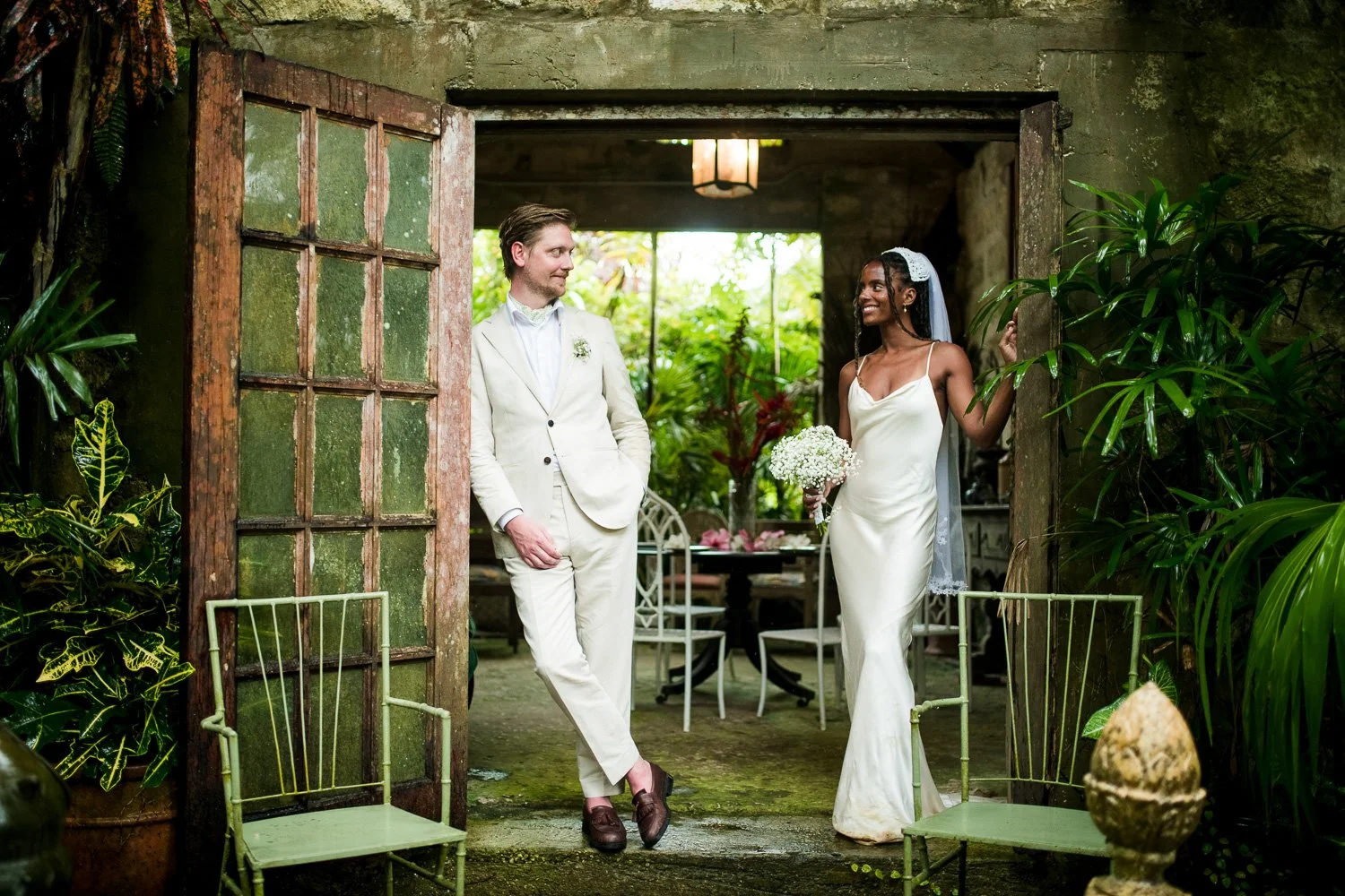 But never once was there a look of dismay on Jennifer or Joel’s face. From the time they arrived at the stunning Hunte’s Garden’s for their wedding, they had huge smiles on their faces. But more, they just laughed through it all. Her white dress turned brown on the bottom, the aisle was water logged, they drank champagne under an umbrella.