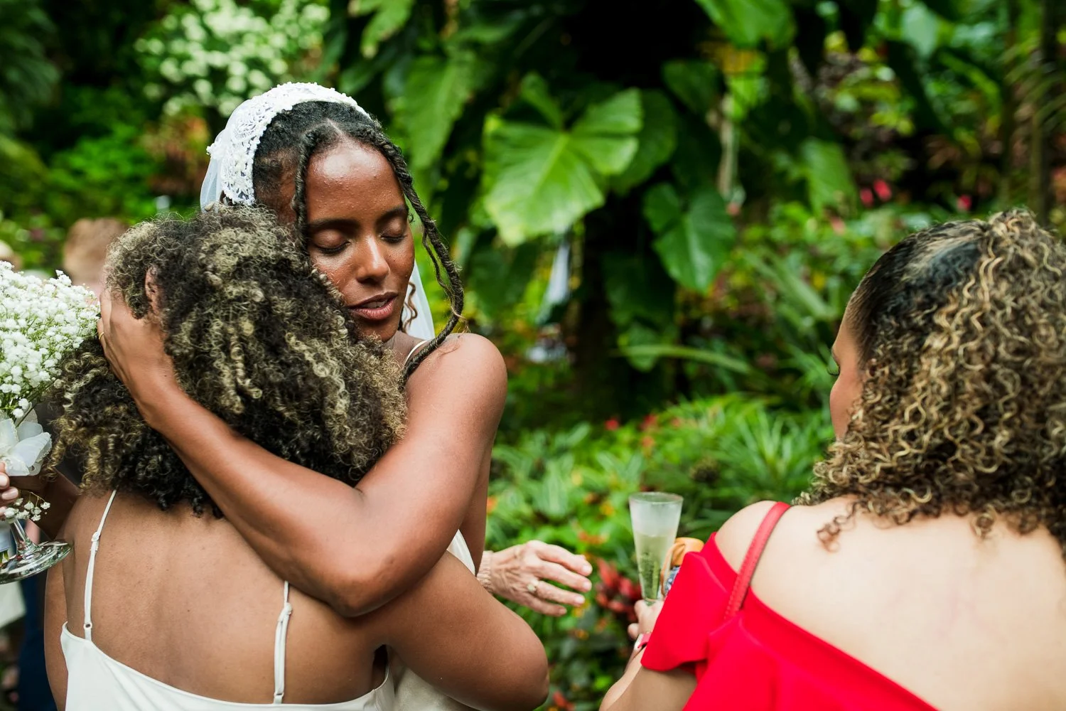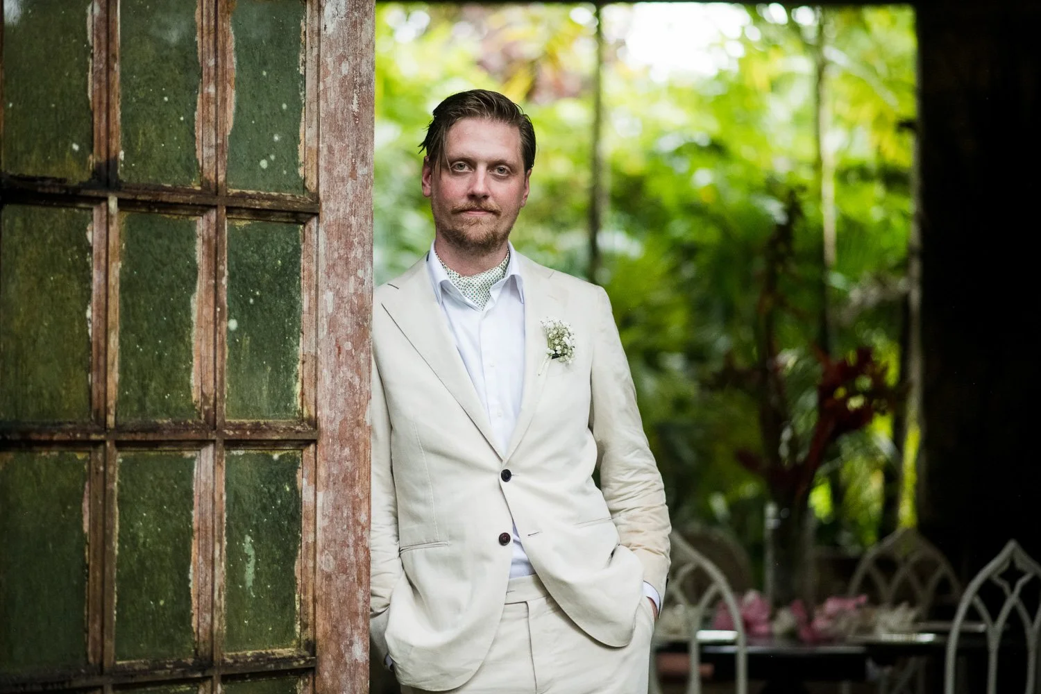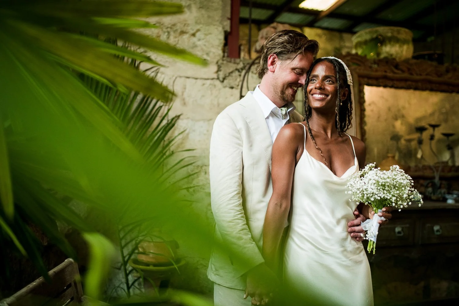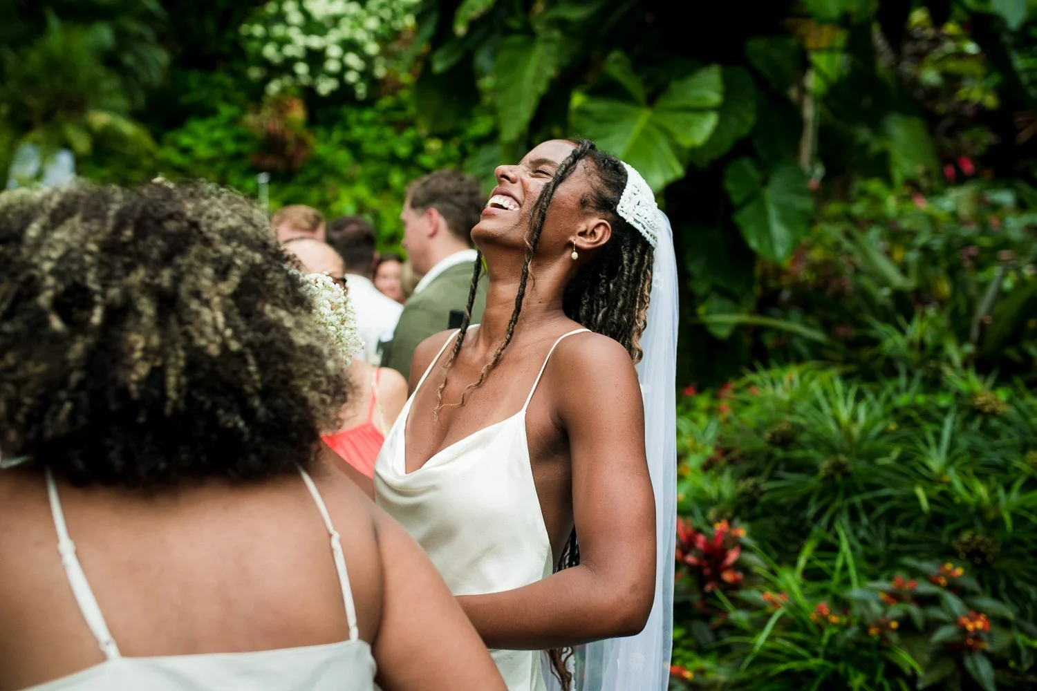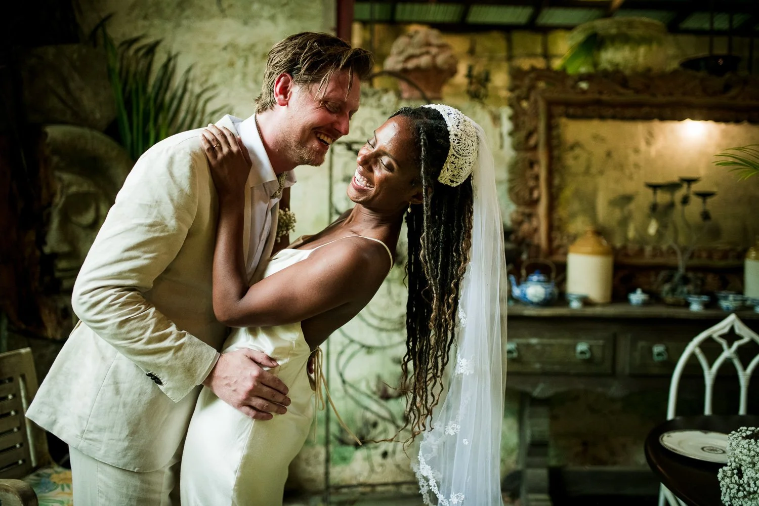 But never once was there a look of dismay on Jennifer or Joel’s face. From the time they arrived at the stunning Hunte’s Garden’s for their wedding, they had huge smiles on their faces. But more, they just laughed through it all. Her white dress turned brown on the bottom, the aisle was water logged, they drank champagne under an umbrella.