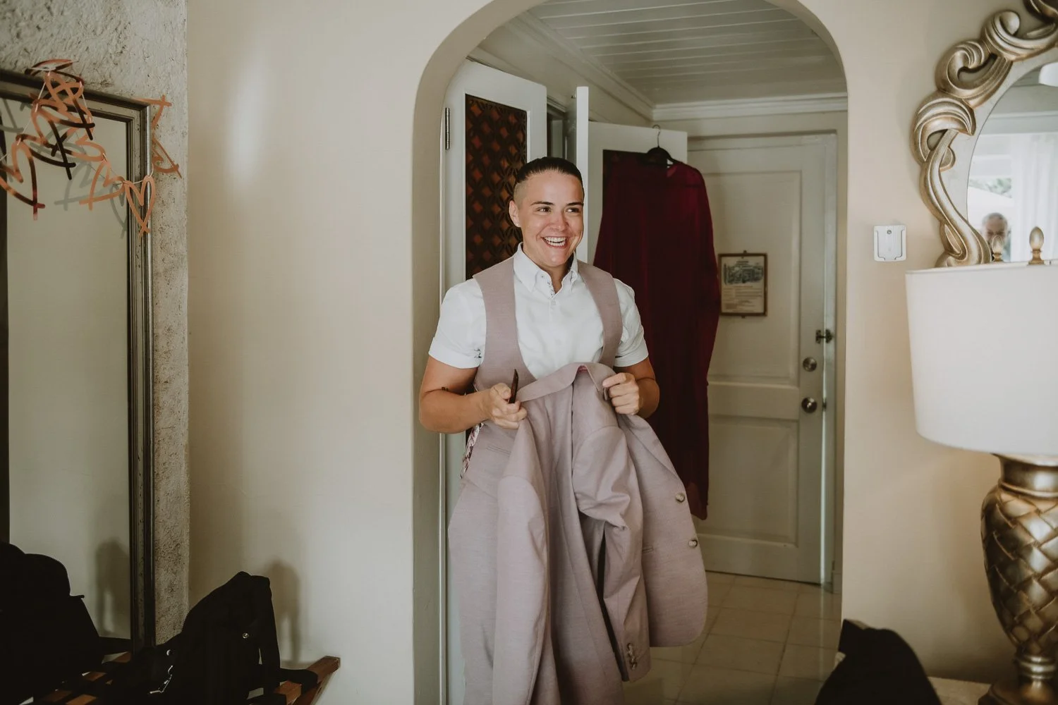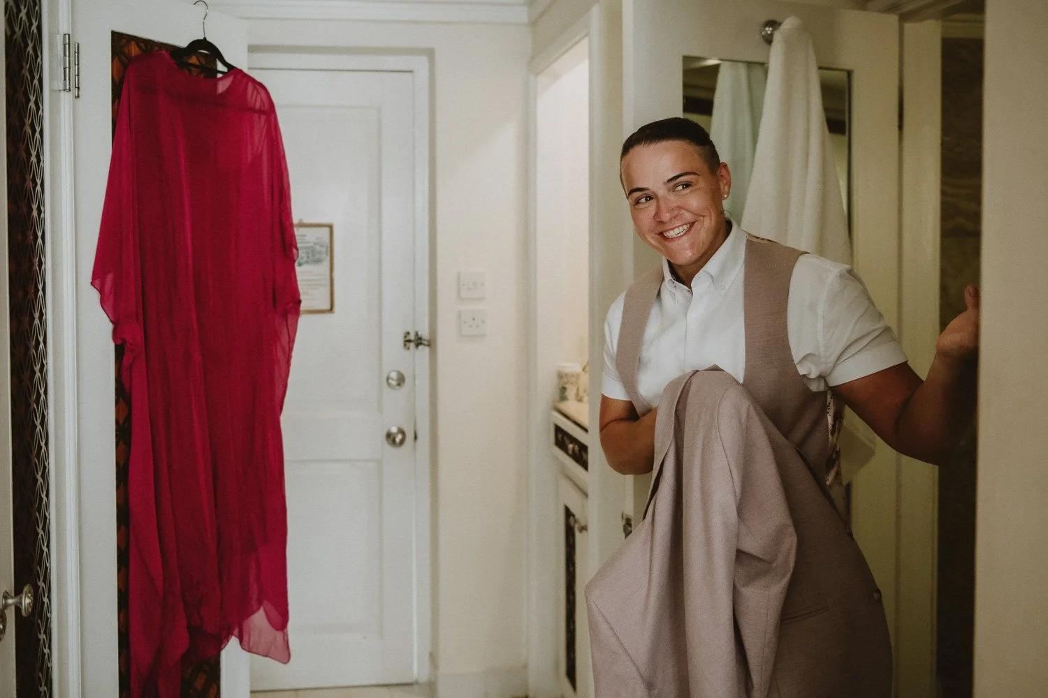 And then I met them at their hotel. Gail was hiding out in the bathroom, not wanting to see Georgina get dressed, and when I peeked in, the smile on Gail’s face was radiant. She was about to marry her best friend.