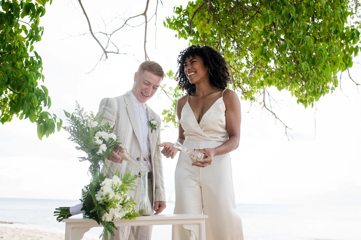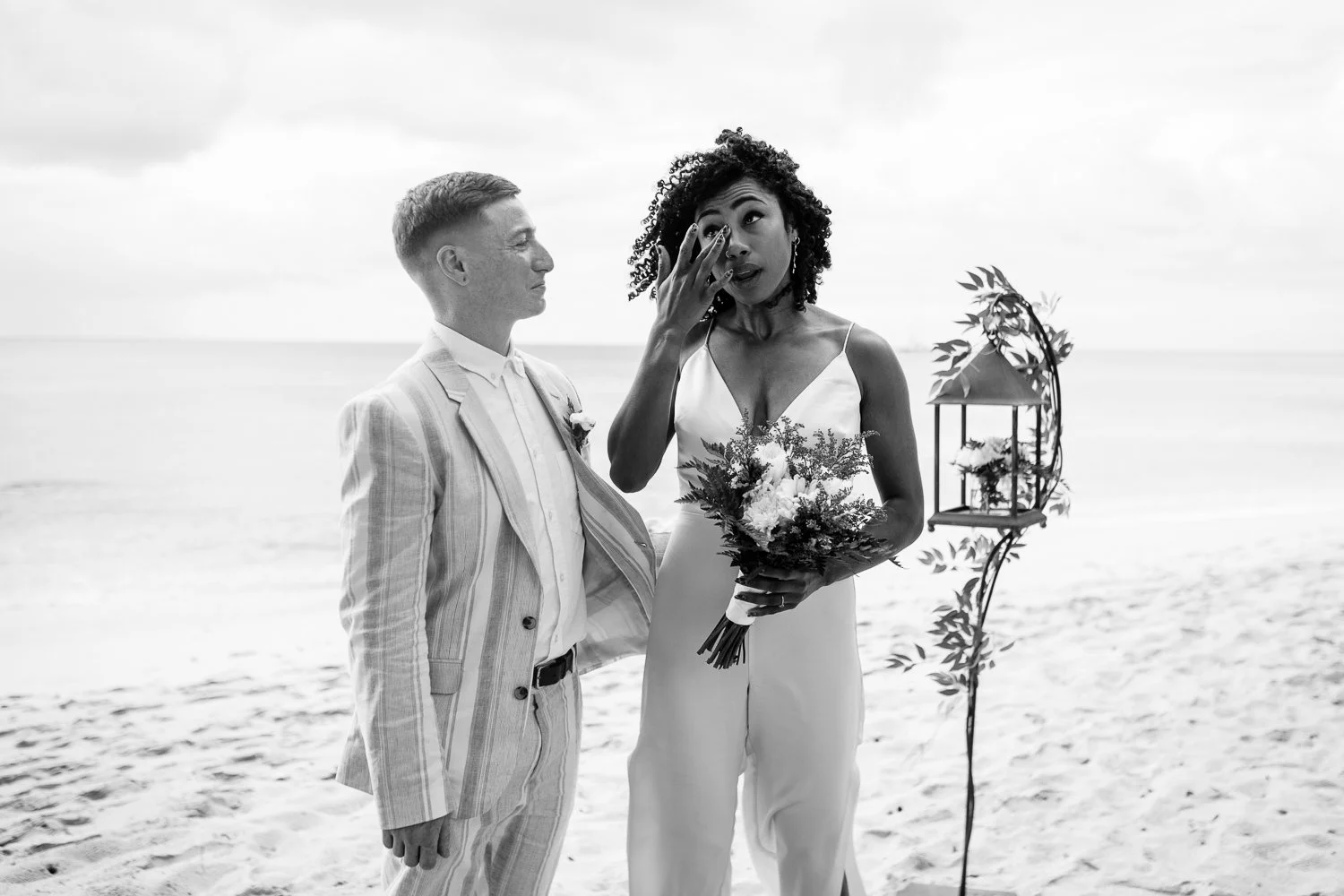At the beach where they said their vows, Jack reached over to Michelle to wipe the tears falling on her face.