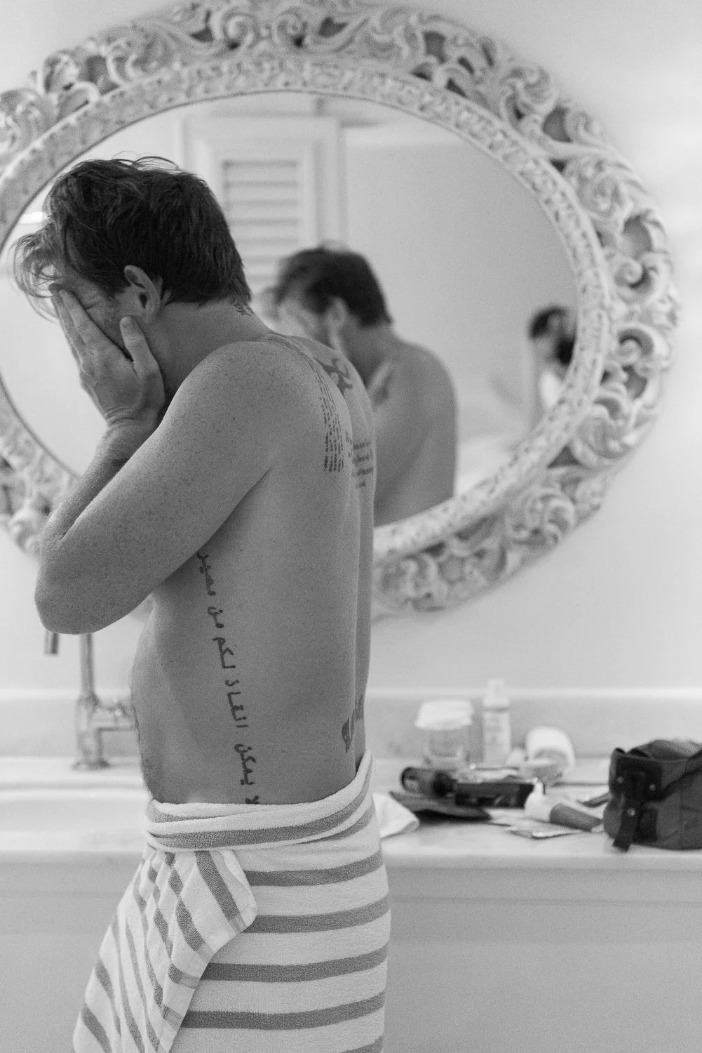 Remember, your wedding day is your story. It’s not about fitting into some perfect mold. It’s about celebrating your love, your way. Even if that means your best friend has to help you tie your bow tie while you’re horizontal. (Yep, we got that shot!)