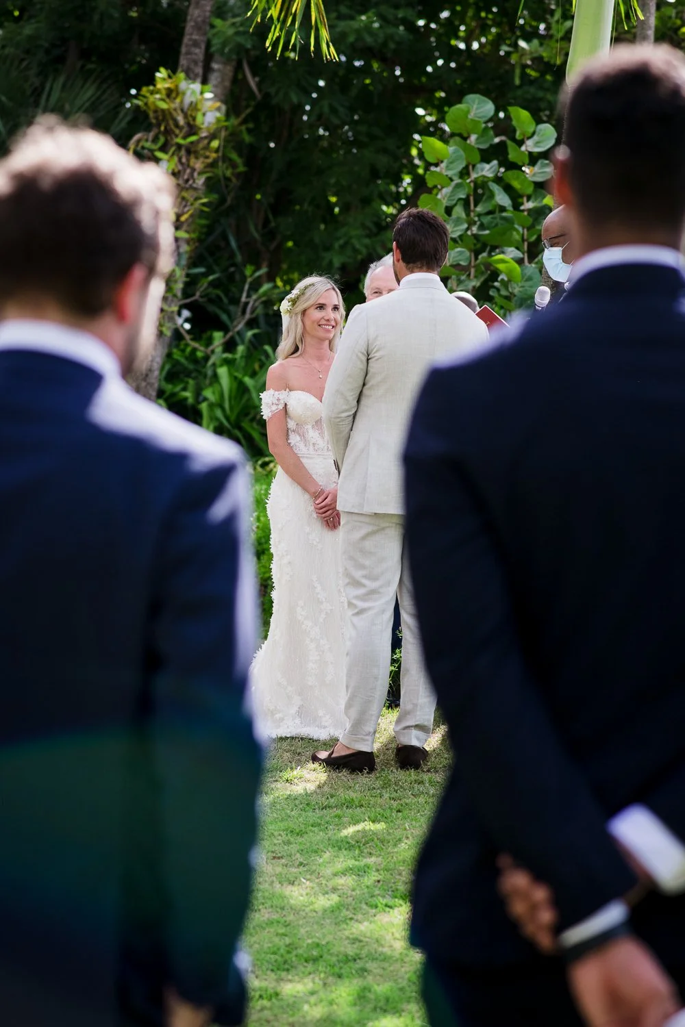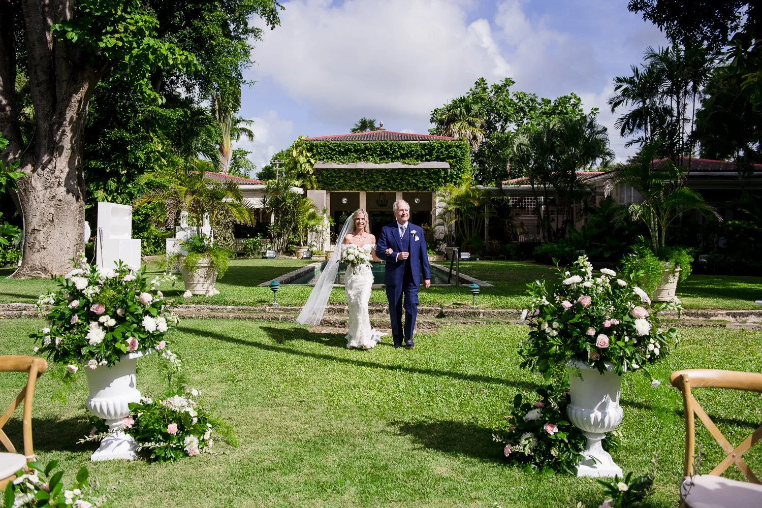 Their ceremony took place at the stunning Nelson Gay Villa, a location that’s basically a slice of paradise. Picture this: lush gardens, the gentle sound of the ocean, and a backdrop that screams “tropical romance.” It was intimate, heartfelt, and perfectly captured the essence of their laid-back personalities.
