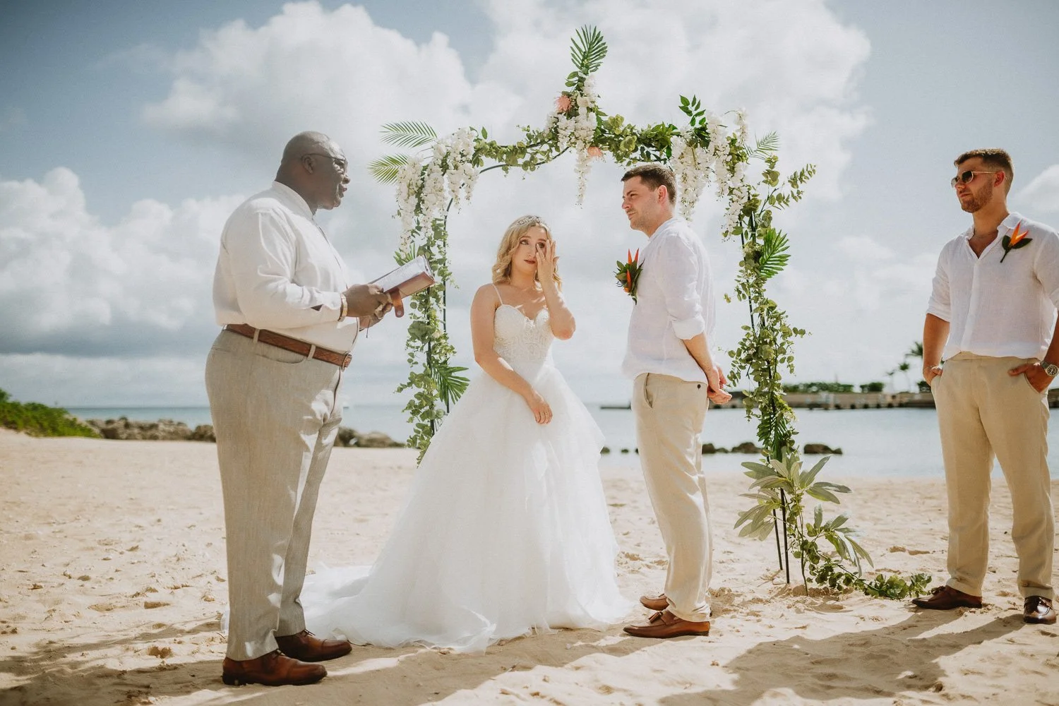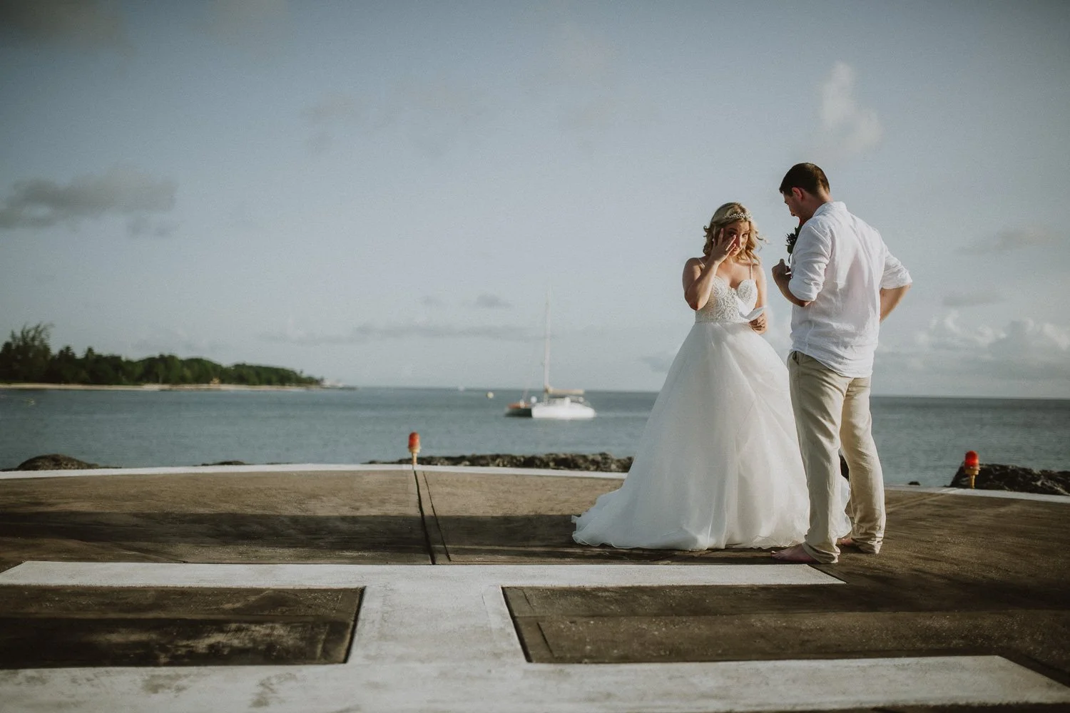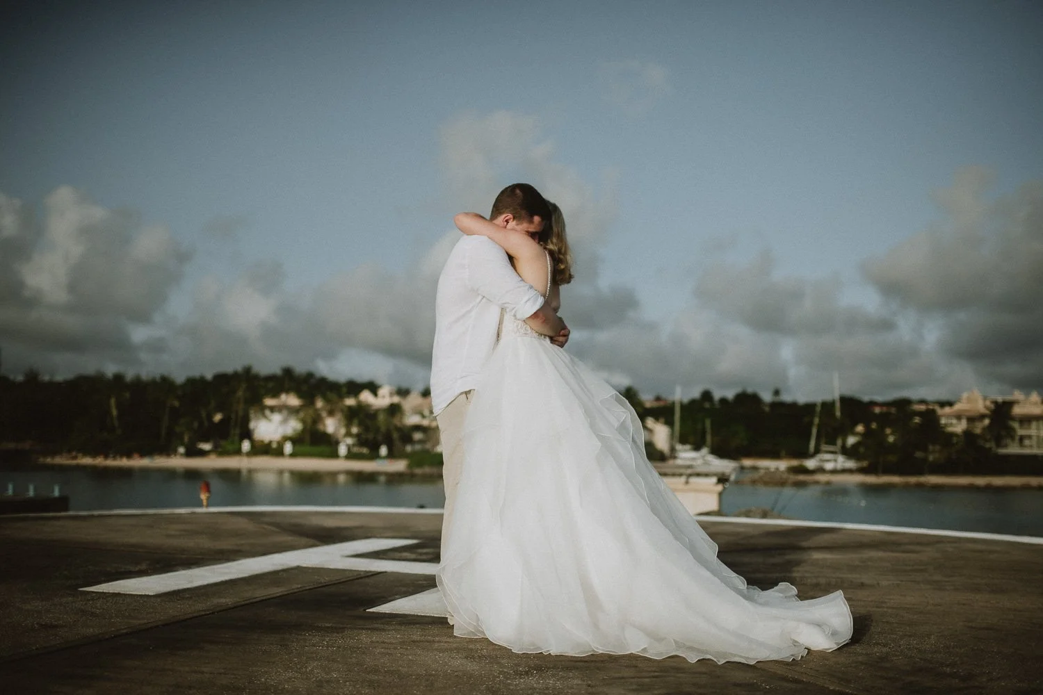 They had their ceremony on the little beach at Port St. Charles, then we made our way to Pier One Restaurant – but not before stopping at the helipad, where they read their vows to each other.
