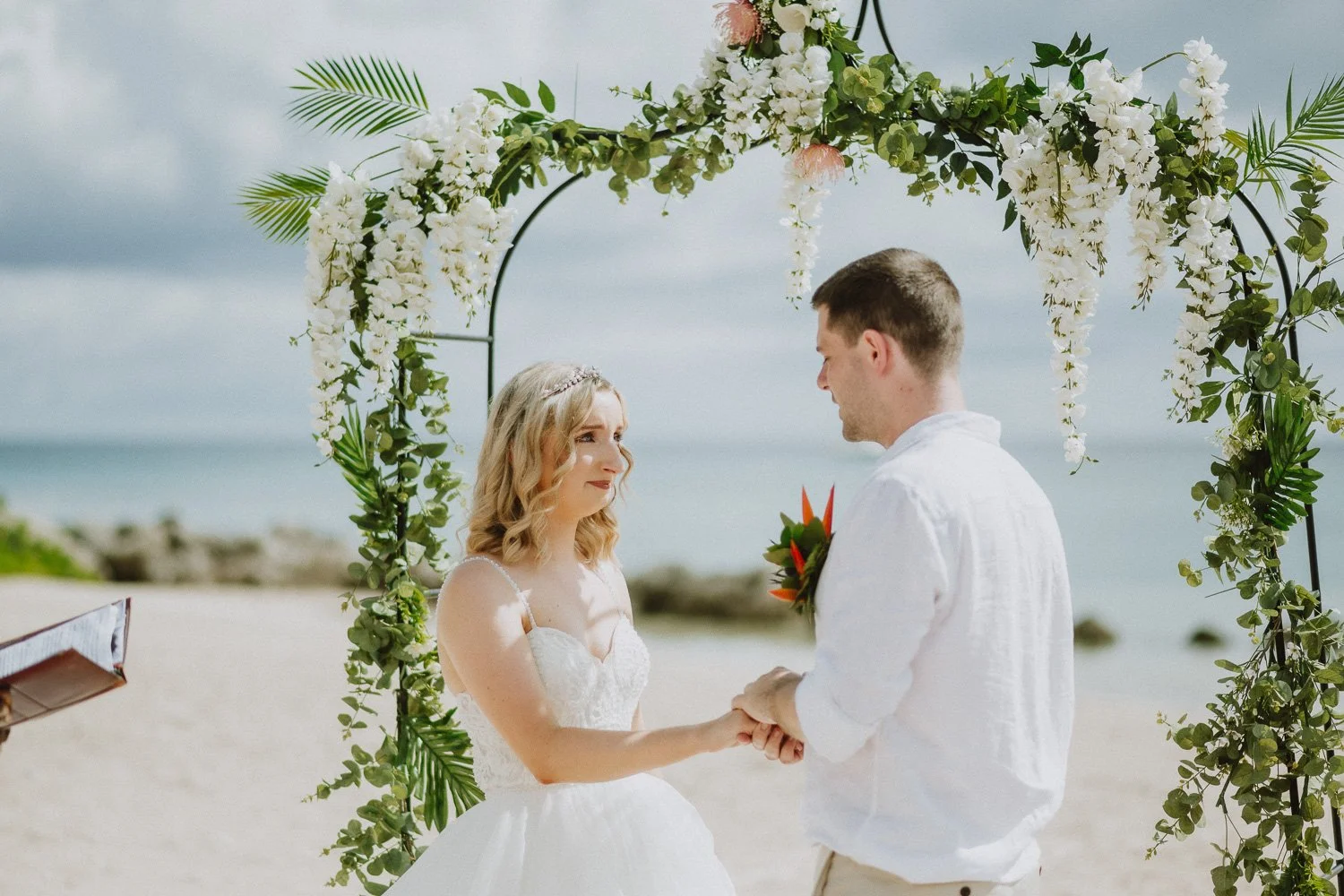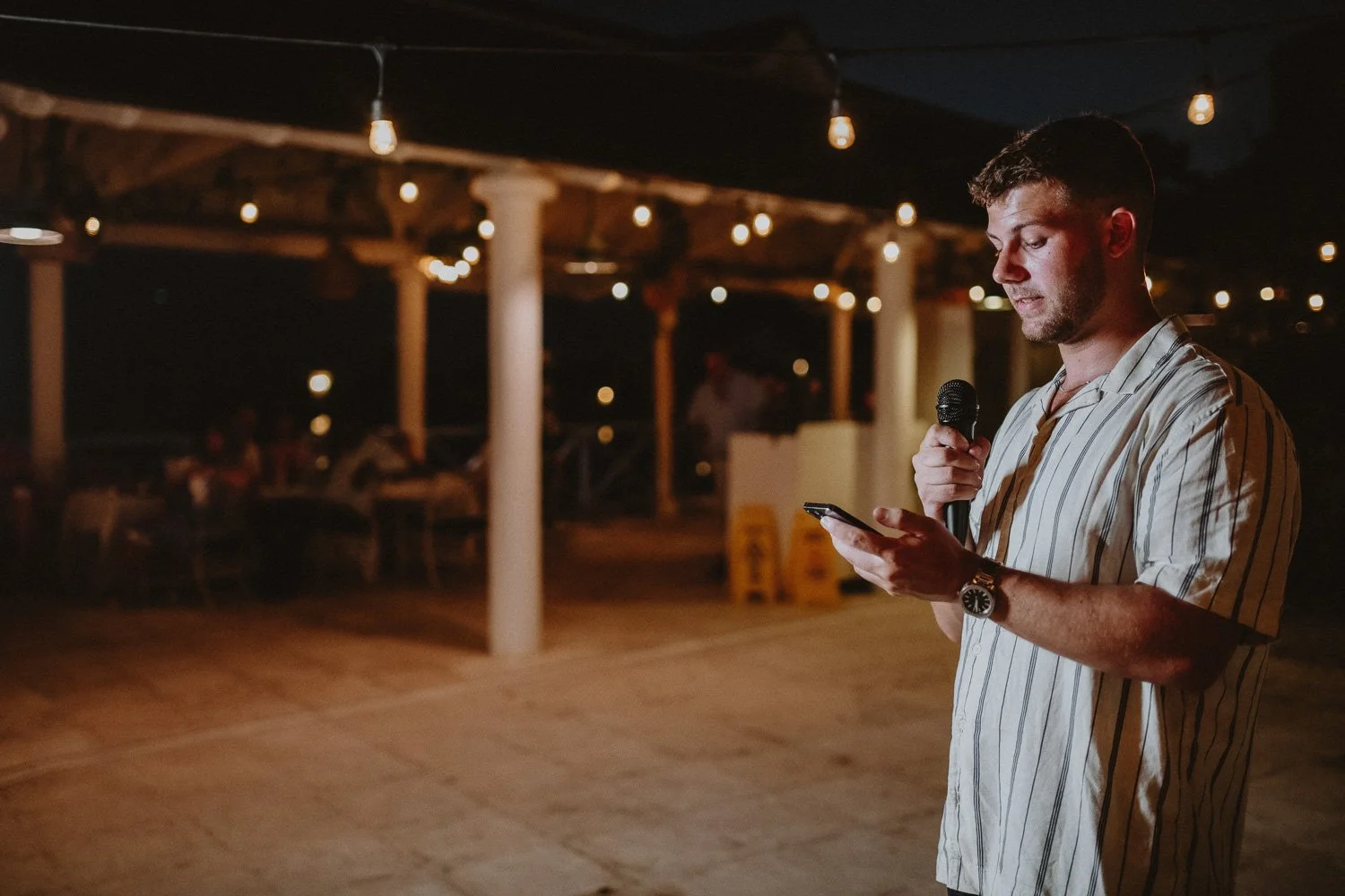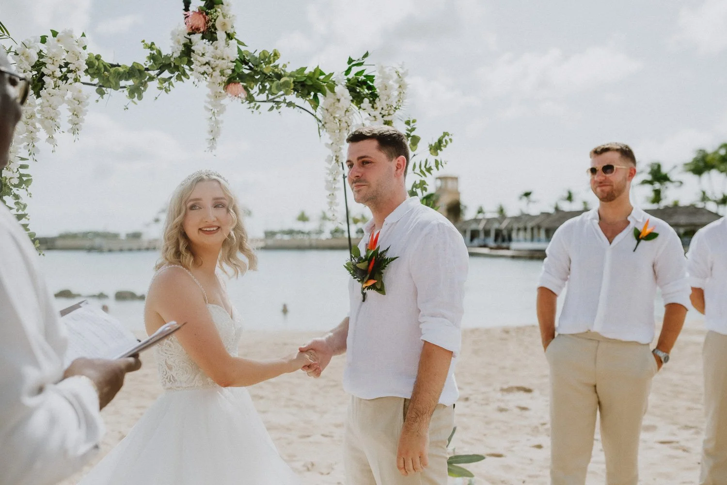 They had their ceremony on the little beach at Port St. Charles, then we made our way to Pier One Restaurant – but not before stopping at the helipad, where they read their vows to each other.